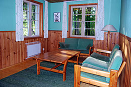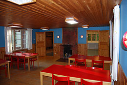 Storstugan har 50 sittplatser och en öppen spis.